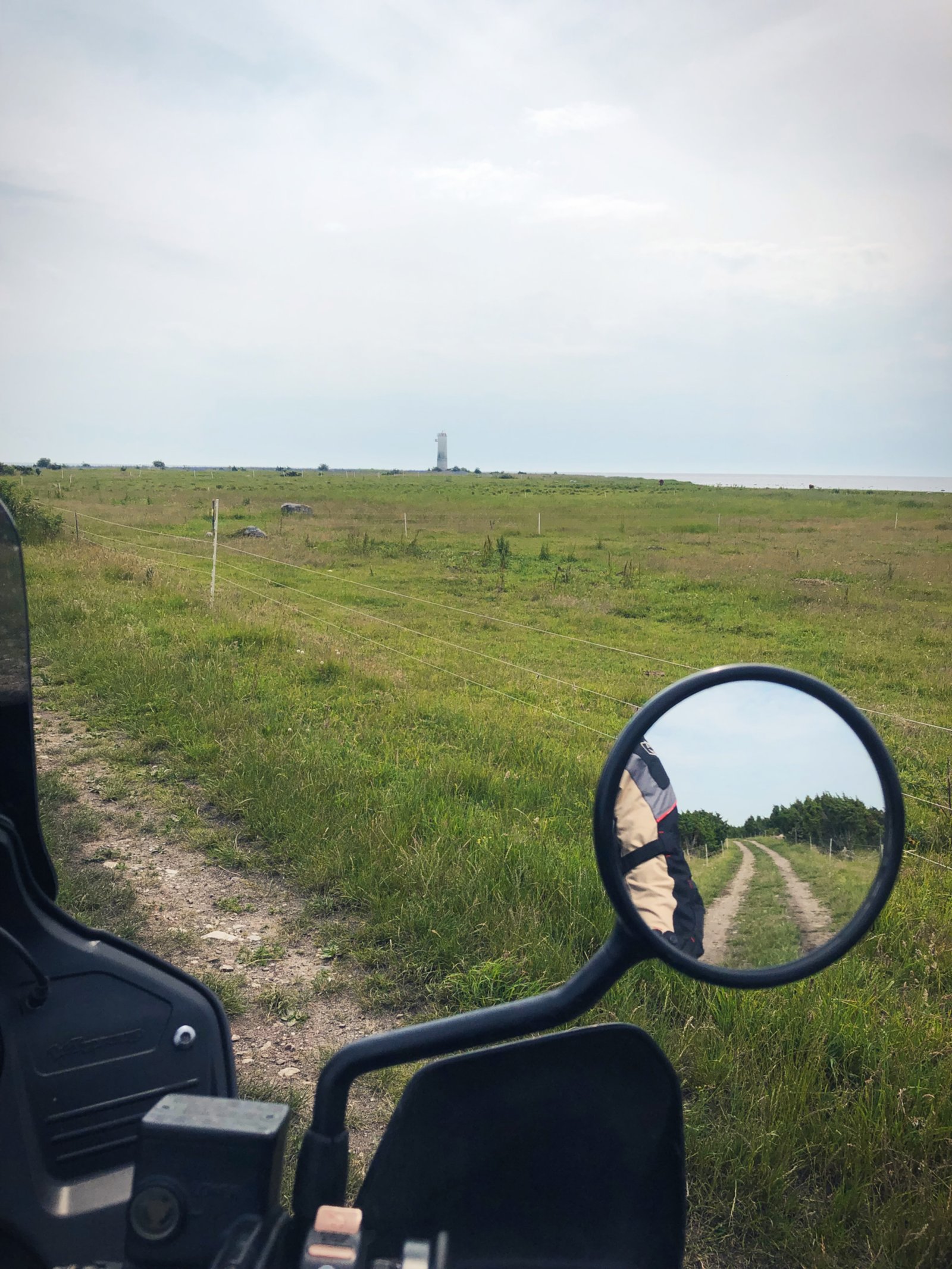 Iki švyturio privažiuoti nėra kaip. Jis nacionalinio parko teritorijoje, tad buvo aišku, kad teks pasivaikščioti. Ok, įsimetėm drabužių pamainą (nelabai fun per karčius 5+5km pėdinti su moto apranga). Žvyras, kaimai, ledai ir sustojimas parūkyti pypkę akmenukų krante.